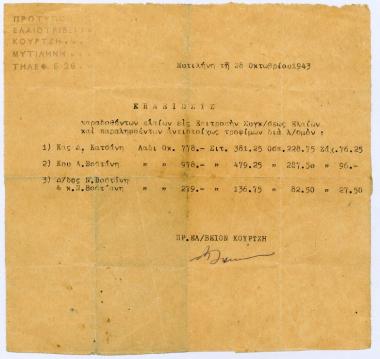 Σημείωση παραδοθέντων ελαίων στην Επιτροπή Συγκεντρώσεως Ελαίων