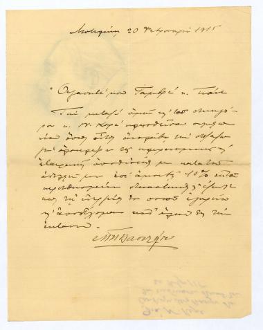 Επιστολή σχετικά με την προίκα της Μυρσινιώς Κ ουρτζή