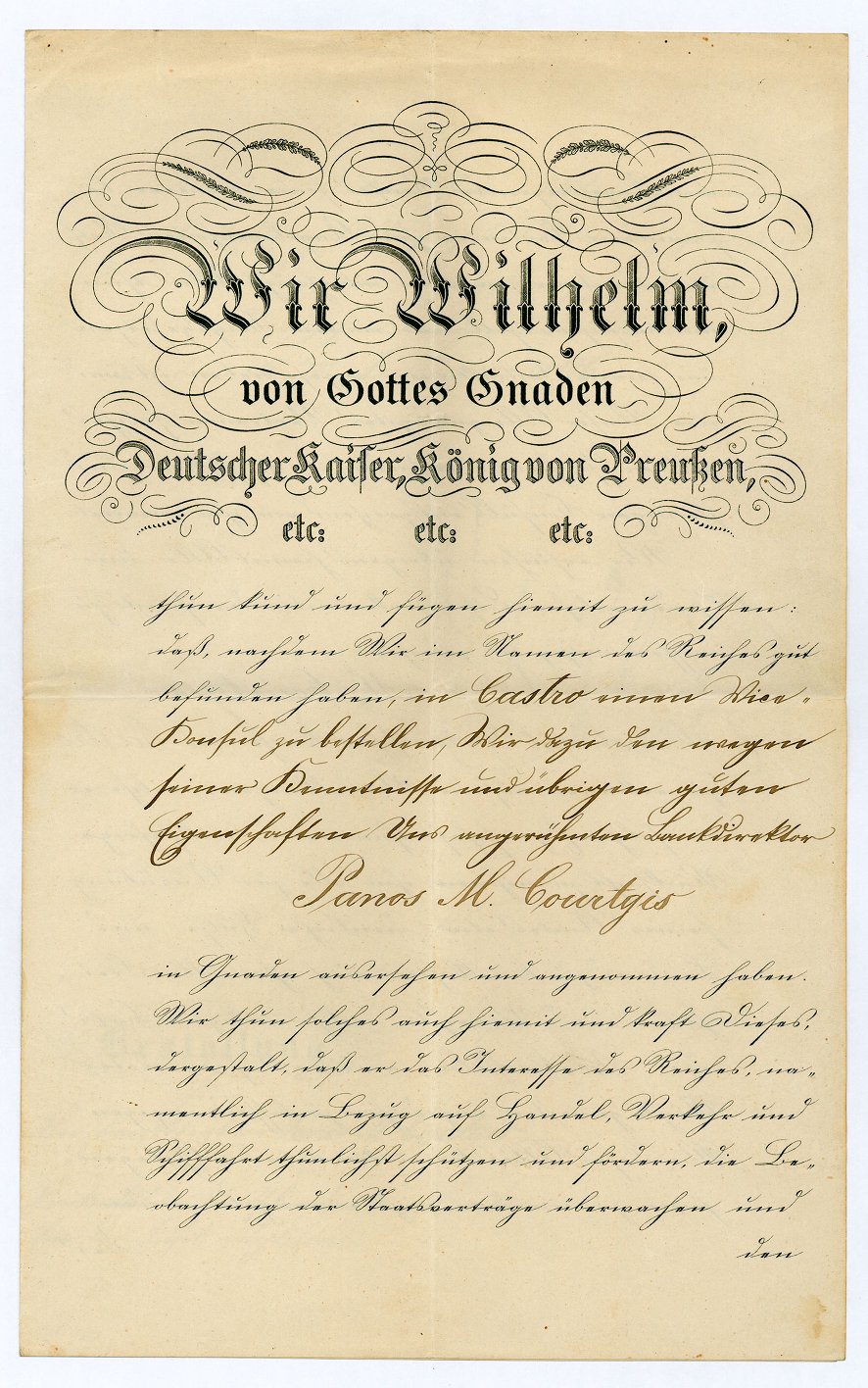 Διορισμός Π. Κουρτζή ως Υποπροξένου της Γερμανικής Αυτοκρατορίας στη Μυτιλήν η