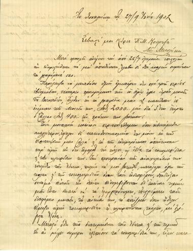 Επιστολή Ζήση στον Πάνο Κουρτζη σχετικά με το θέμα ίδρυσης υποκαταστήματος στο Άγιο Όρος