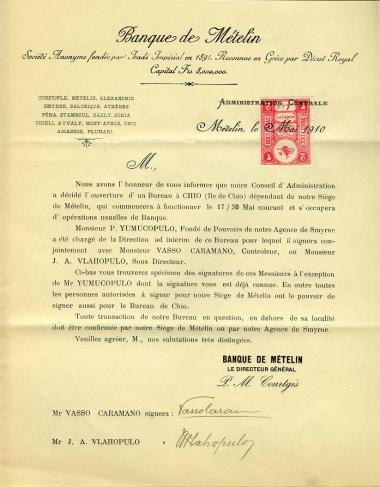 Εγκύκλιος σχετικά με την έναρξη λειτουργίας υποκαταστήματος Χίου