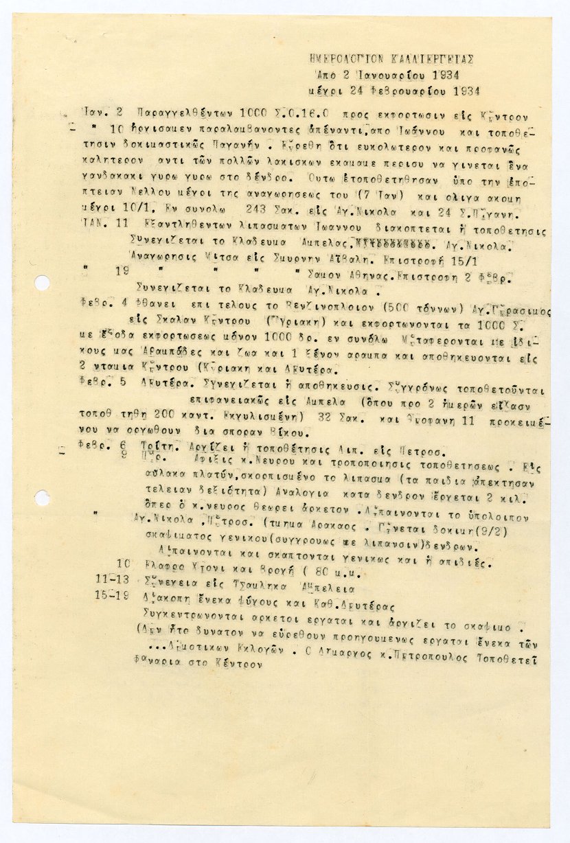 Ημερολόγιο καλλιέργειας στα κτήματα της οικογένειας Κουρτζή