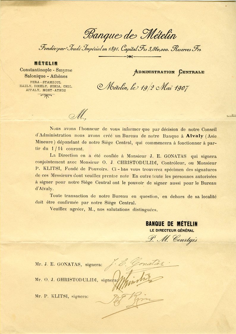 Ενημερωτική εγκύκλιος σχετικά με την έναρξη λειτουργίας του υποκαταστήματος στο Αïβαλί