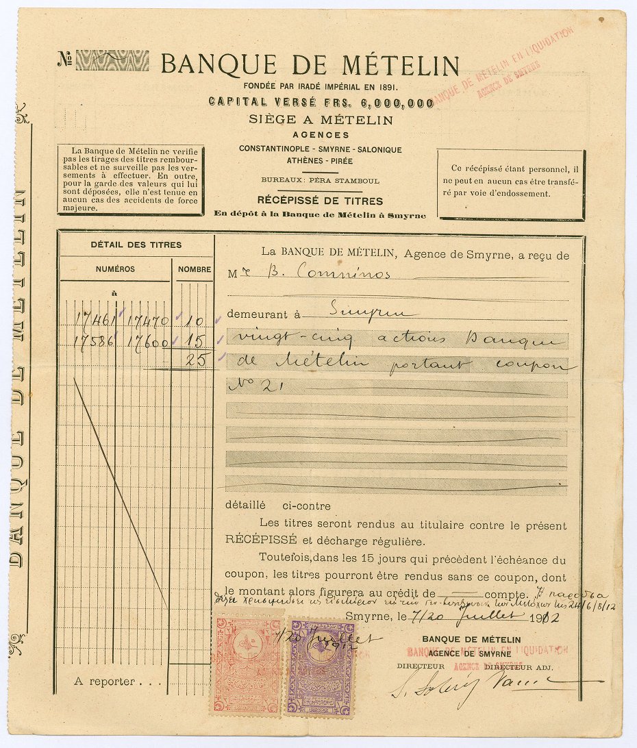 Αποδείξεις απόκτησης τίτλων της Τράπεζας Μυτιλήνης