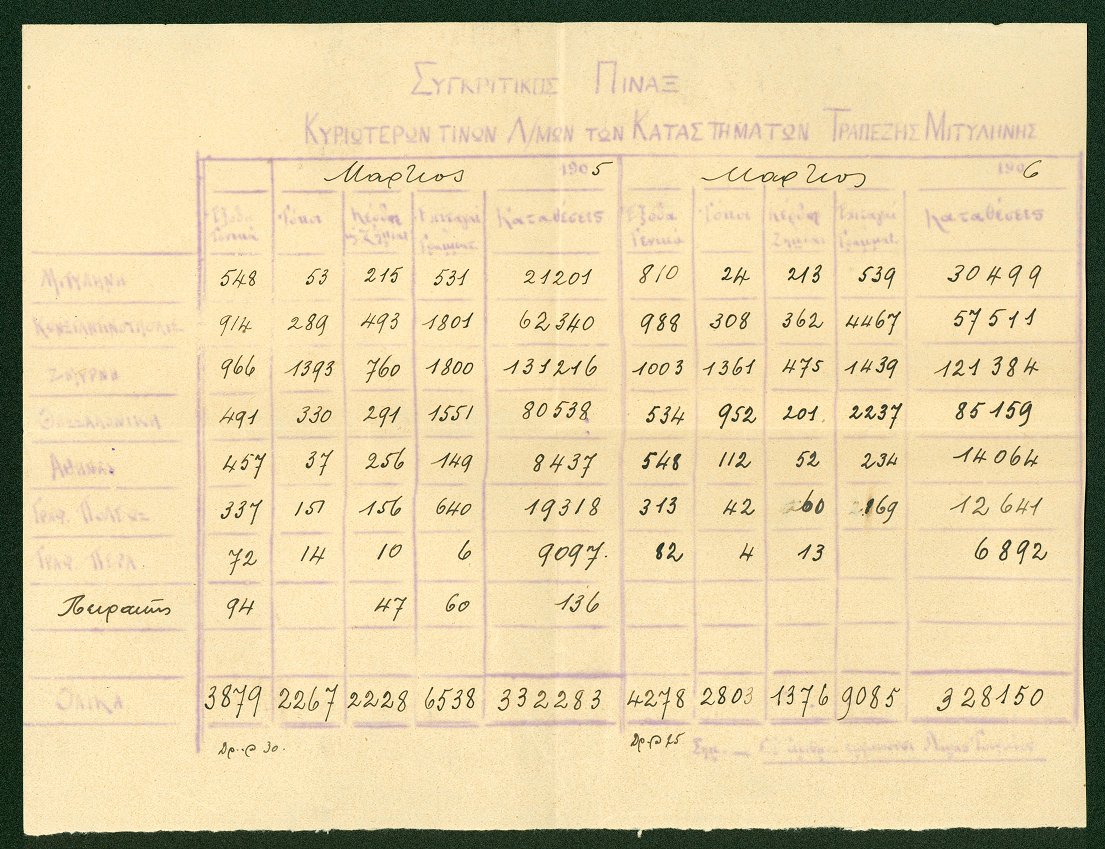 Συγκριτικός πίνακας κυριωτέρων λογαριασμών των καταστημάτων της Τράπεζας Μυτιλήνης