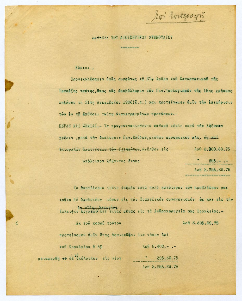 Έκθεση διοικητικού συμβουλίου της Τράπεζας Μυτιλήνης