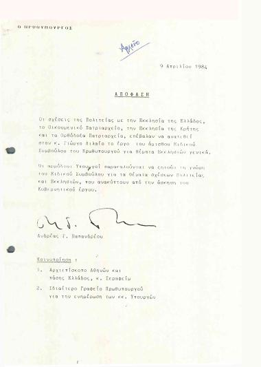 Κοινοποίηση προς Αρχιεπίσκοπο Αθηνών και πάσης Ελλάδος κ. Σεραφείμ και Ιδιαίτερο γραφείο Πρωθυπουργού για ενημέρωση των κ.κ. Υπουργών. Δε δίνεται τίτλος στο τεκμήριο. Δίνεται σχετικός τίτλος κατά την τεκμηρίωση.