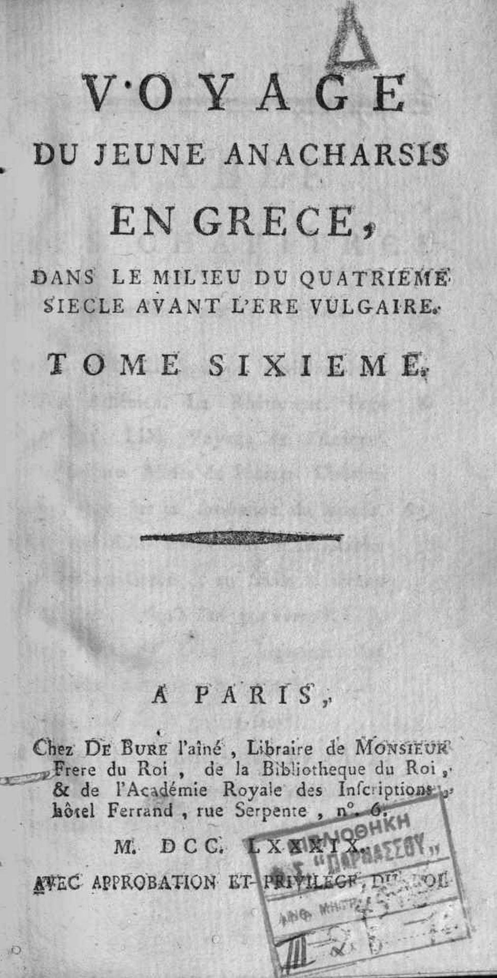 VOYAGE DU JEUNE ANACHARSIS EN GRECE, DANS LE MILIEU DU QUATRIEME SIECLE AVANT L’ERE VULGAIRE, TOME SIXIEME