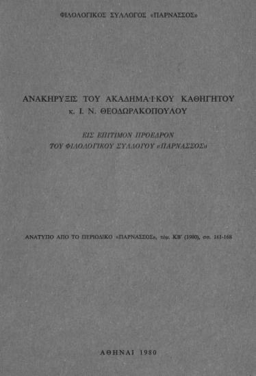ΑΝΑΚΗΡΥΞΙΣ ΤΟΥ ΑΚΑΔΗΜΑΙΚΟΥ ΚΑΘΗΓΗΤΟΥ κ. Ι.Ν.ΘΕΟΔΩΡΑΚΟΠΟΥΛΟΥ