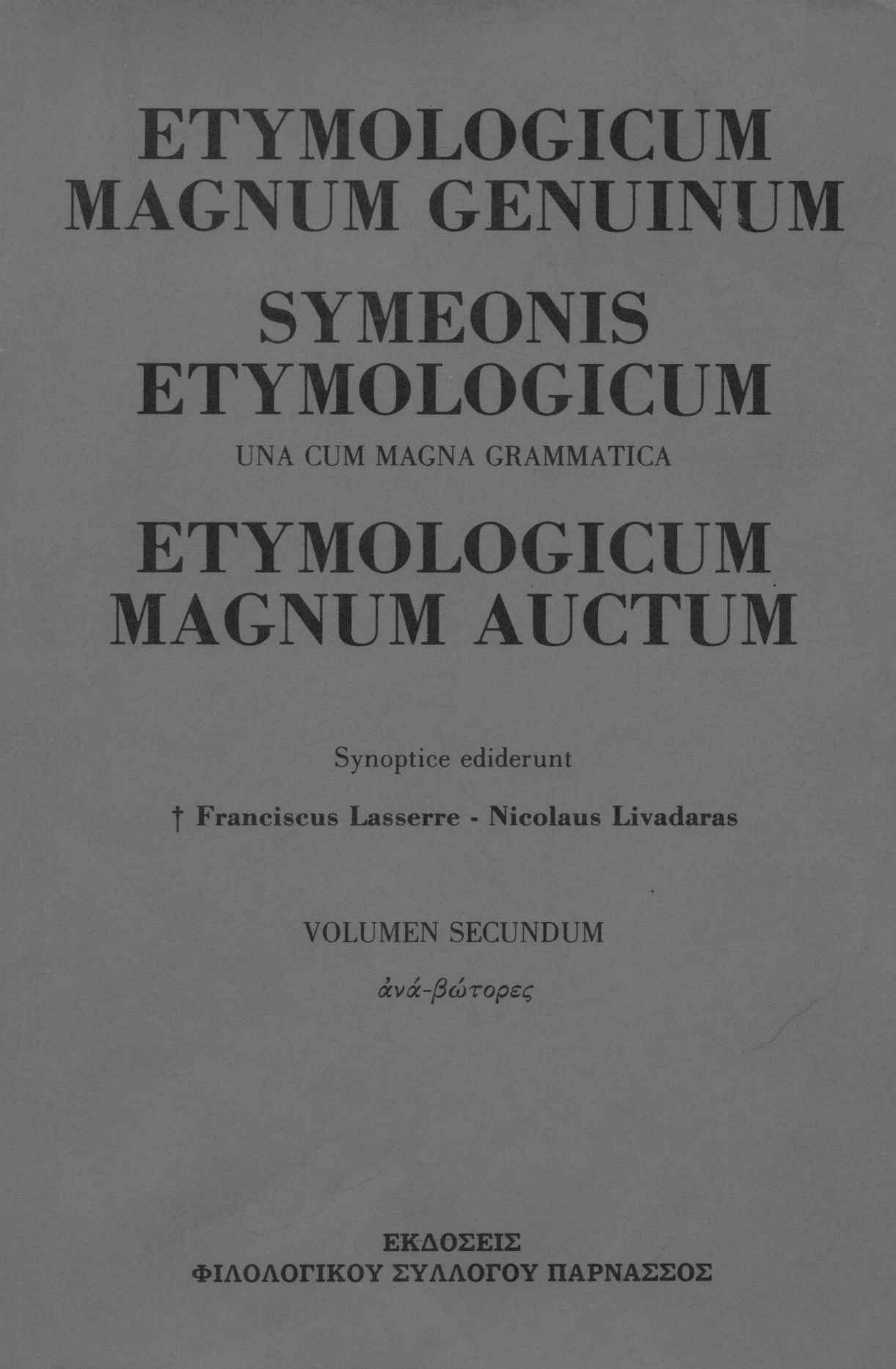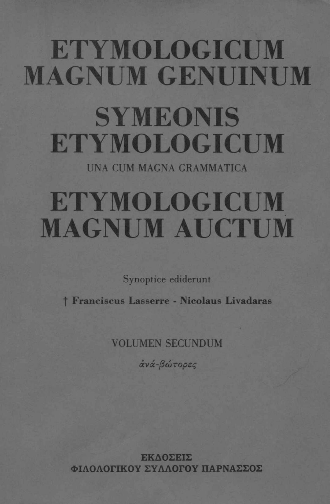 ETYMOLOGICUM MAGNUM GENUINUM,SYMEONIS ETYMOLOGICUM, ETYMOLOGICUM MAGNUM AUCTUM