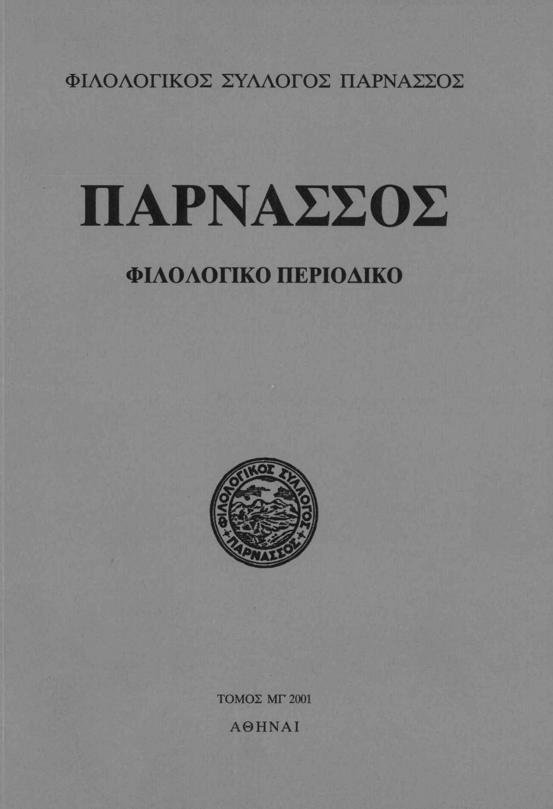 “ΠΑΡΝΑΣΣΟΣ” ΦΙΛΟΛΟΓΙΚΟ ΠΕΡΙΟΔΙΚΟ, ΤΟΜΟΣ ΜΓ’