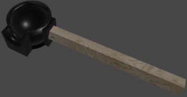 Outil fabriqué à partir d'un bloc de bois creusé pour former un évidement hémisphérique. Après avoir été plongé dans l'eau pour réduire la carbonisation et créer un "coussin" de vapeur, le bloc est utilisé pour former le rassemblement en une sphère avant d'être gonflé.