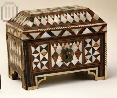 Ξύλινο κιβωτίδιο για εκκλησιαστική χρήση. Φέρει καπάκι. Οι εξωτερικές επιφάνειες (πλαϊνά και καπάκι) διακοσμούνται με ψηφίδες από όστρακο. Παριστάνονται γεωμετρικά σχέδια (τετράγωνα, ρόμβοι). Η βάση του καπακιού διακοσμείται ολόγυρα με ζικζακωτή ταινία.