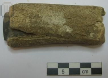 Τμήμα κέρατος ελαφιού (;) που φέρει στο ένα άκρο στυλεωμένη λίθινη αξίνα. (EL)
