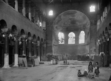 Με τη λήψη να πραγματοποιείται το 1919, δύο χρόνια μετά την καταστροφική πυρκαγιά που έπληξε την πόλη της Θεσσαλονίκης, η φωτογραφία αποτυπώνει ένα στιγμιότυπο από το εσωτερικό του ναού της Παναγίας της Αχειροποιήτου που λειτούργησε ως κατάλυμα για τους πυρόπληκτους. Σε πρώτο πλάνο στα δεξιά διακρίνονται πέντε μικρά παιδιά που κοιτάζουν προς το φακό. Γύρω τους αναπτύσσονται αυτοσχέδια δωμάτια που στήθηκαν πρόχειρα από υφάσματα κατά μήκος των κιονοστοιχιών καθώς και σειρές από απλωμένα ρούχα σε σχοινιά στο χώρο του ιερού. Στο βάθος και αριστερά είναι τοποθετημένες δυο εικόνες σε βάσεις κι ένας επιδαπέδιος μεταλλικός σταυρός ως στοιχειώδη εκκλησιαστικά αντικείμενα στον άδειο ναό. Η εκκλησία της Αχειροποιήτου μετατράπηκε σε τζαμί μετά την άλωση της Θεσσαλονίκης από τους Οθωμανούς και μετονομάστηκε σε Εσκί Τζουμά Τζαμί δηλαδή Τζαμί της Παλαιάς Παρασκευής καθώς η συνάθροιση των πιστών για την τέλεση της επίσημης μεσημβρινής προσευχής γινόταν την ιερή μέρα των μουσουλμάνων, την Παρασκευή. Έτσι από περιηγητές και λόγιους αναφέρεται ως ναός της Αγίας Παρασκευής στοιχείο που φαίνεται να δικαιολογεί τον τίτλο που έδωσε ο φωτογράφος στην εικόνα.