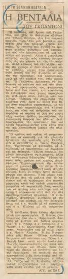 "Η βεντάλια" του Γκολντόνι, εις το Εθνικόν Θέατρον
