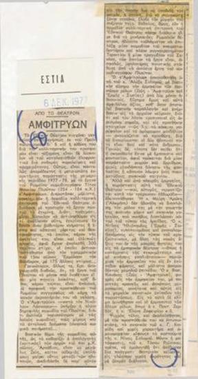 Πρόγραμμα για την παράσταση "Αμφιτρύων" (1977)