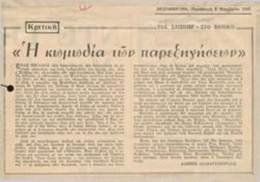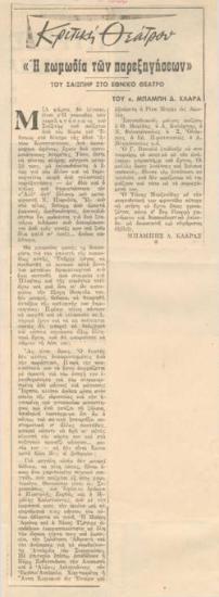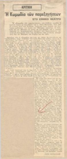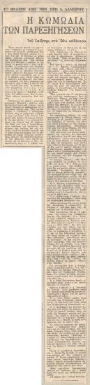 Το εναρκτήριο του Εθνικού. Θρίαμβος της φαντασίας στη ζωή χαρακτηρίζεται η "Κωμωδία των παρεξηγήσεων". Η πρεμιέρα του σαιξπηρικού έργου θα δοθή την Τετάρτην