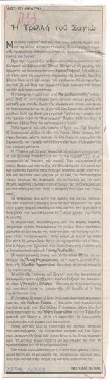 Πρόγραμμα για την παράσταση "Η τρελή του Σαγιώ" (2003)