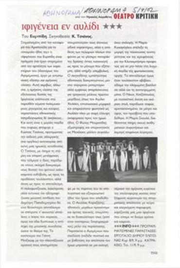 A tragic performance... "Iphigenia in Aulis". National Theatre: The only good thing was the Chorus' voices!
