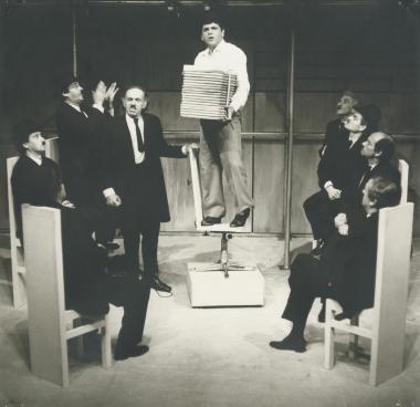 Τμήμα ηχογράφισης από την παράσταση "Κρεατομηχανή" (1984)