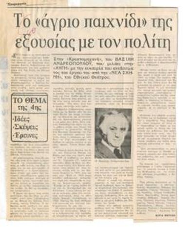 Εξουσιαστές και εξουσιαζόμενοι με την "Κρεατομηχανή" του Ανδρεόπουλου