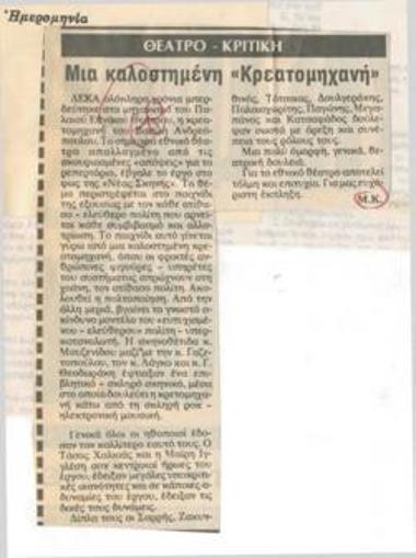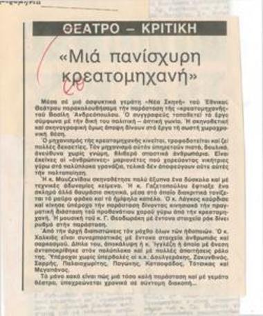 Ηχογράφιση από την παράσταση "Κρεατομηχανή" (1984)