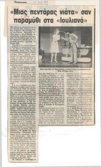 Ηχογράφιση από την παράσταση "Μιας πεντάρας νιάτα" (1985)