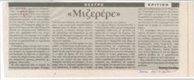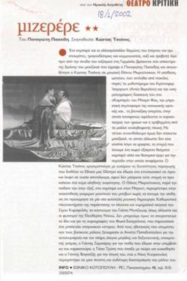 Πρόγραμμα για την παράσταση "Μιζερέρε" (2001)