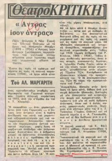 Ηχογράφιση από την παράσταση "Άντρας ίσον άντρας" (1982)