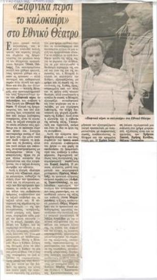 Μαγνητοσκόπηση της παράστασης "Ξαφνικά πέρσι το καλοκαίρι" (1999)