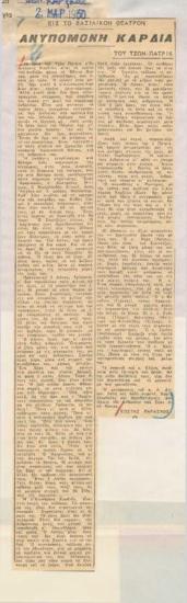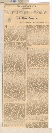 "Ανυπόμονη καρδιά" του Τζων Πάτρικ (εις το Εθνικόν)