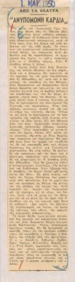 Πρόγραμμα για την παράσταση "Ανυπόμονη καρδιά" (1950)