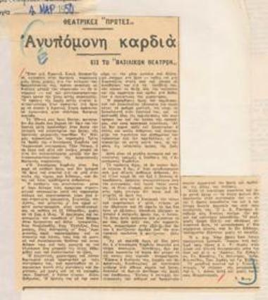 "Ανυπόμονη καρδιά" εις το Βασιλικόν Θέατρον