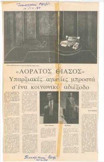 "Αόρατος θίασος". Υπαρξιακές αγωνίες μπροστά σ' ένα κοινωνικό αδιέξοδο