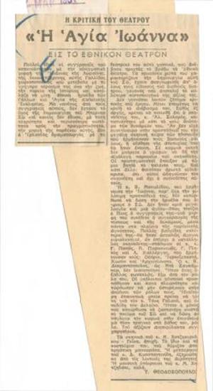 Bernard Shaw "Saint Joan". With Vaso Manolidou at the National Theatre