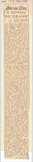 Πρόγραμμα για την παράσταση "Ο κουρεύς της Σεβίλλης" (1948)