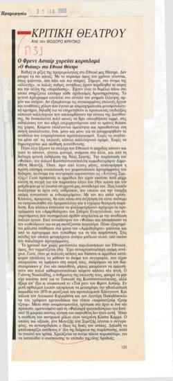 Προσωπικά "στίγματα" και ρόλοι. Παράσταση με πολλά προβλήματα αλλά και φιλότιμη προσπάθεια ο "Φιάκας" του Δ. Κ. Μισιτζή, που παρουσίασε το Εθνικό Θέατρο