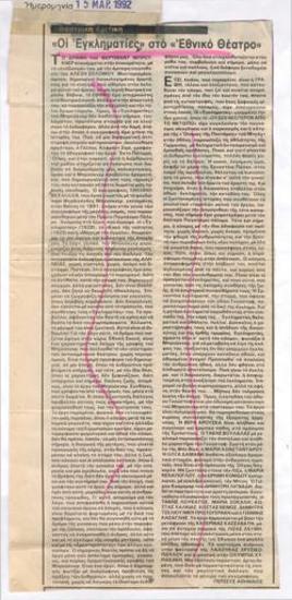 Πρόγραμμα για την παράσταση "Οι εγκληματίες" (1992)