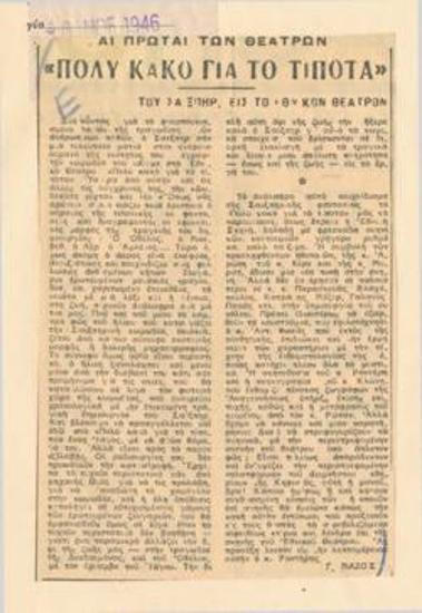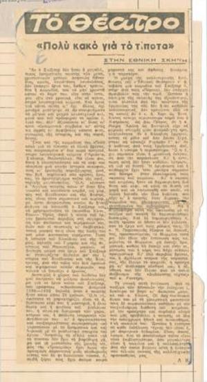 Αι παραστάσεις του Εθν. Θεάτρου. 12.000 για ένα εισιτήριο!! Μαύρη κατάμαυρη αγορά. Το παίξιμο των ηθοποιών. Κρίσεις δια την σκηνοθεσίαν.