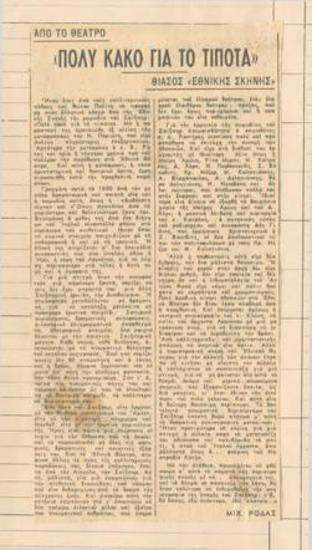 Σαίξπηρ: "Πολύ κακό για το τίποτε". "Εθνικόν Θέατρον".