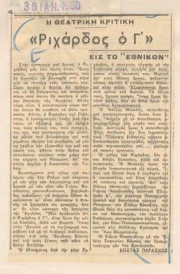 "Ριχάρδος ο Γ΄" εις το Εθνικόν