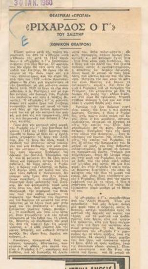 Πρόγραμμα για την παράσταση "Ριχάρδος ο Γ'" (1960)