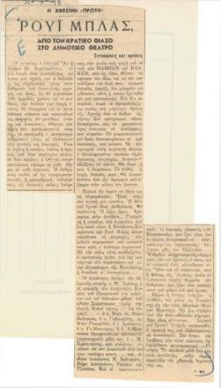 "Ρουί Μπλας" εις το Δημοτικόν Θέατρον.