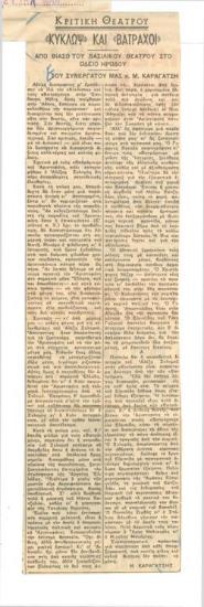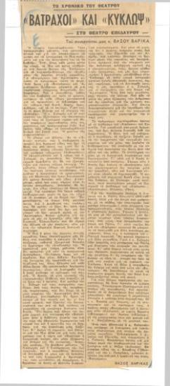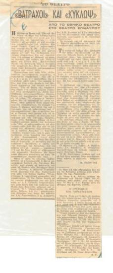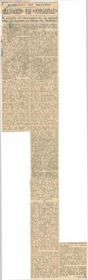 Αριστοφάνους "Βάτραχοι", Ευριπίδου "Κύκλωψ" εις το θέατρον Επιδαύρου