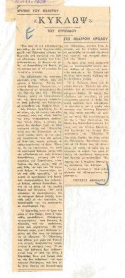 Greek plays, ancient and modern. Odeon of Herodus Atticus , Euripides "Cyclops" (translated by Αλέξαντρος Πάλλης), Aristophanes "Frogs" (translated by Apostolos Melachrinos)