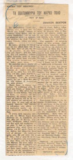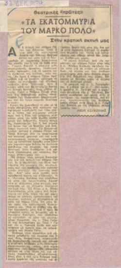 "Τα εκατομμύρια του Μάρκο Πόλο", Θέατρον Εθνικόν