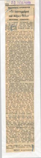 Πρόγραμμα για την παράσταση "Τα εκατομμύρια του Μάρκο Πόλο" (1960)