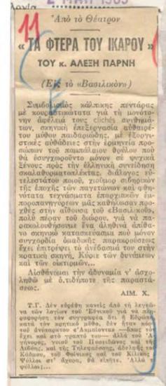 "Τα φτερά του Ίκαρου" του κ. Αλέξη Πάρνη (εις το Βασιλικόν)