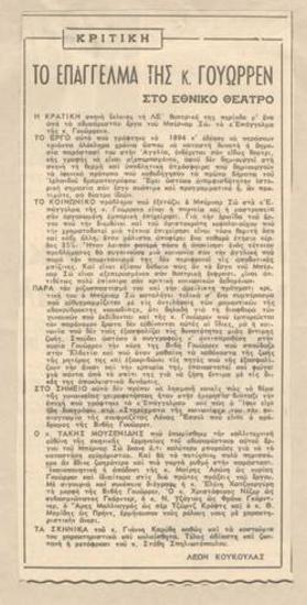 Συμπτώματα αποδιοργανώσεως. Παραστάσεις στο Εθνικό υπό τύπον γενικών δοκιμών. Επισπεύδεται η παρουσίασις της